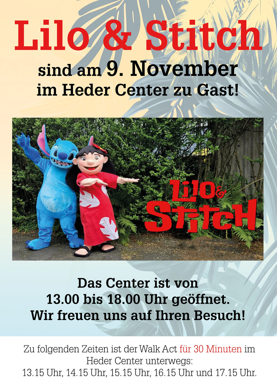 Das Heder Center hat am Sonntag, 9. November von 13.00 Uhr bis 18.00 Uhr geöffent.